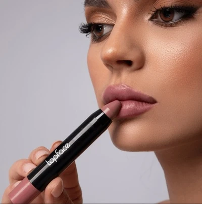 أحمر شفاه روج مطفي فوكس بوينت من توب فيس لون شفاه جذاب وأنيق احمر شفاه جذاب يتميز بتركيبة عالية الصبغة وفائقة الترطيب. سهل التطبيق بفضل قوامه الكريمي الناعم الذي يمنحك مظهر شفاه مخملية مطفية بدون أن يتكتل. لن تحتاجي إلى فرشاة أو مبراة، كل ما عليك هو تدويره من الأسفل لتحصلي على رأس غني باللون مرة أخرى. تمتعي بلون غني وجذاب بلمسة نهائية حريرية تزيد من جمال شفتيك.