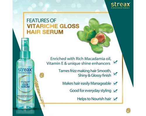 سيمنحكِ سيروم الشعر اللامع "ستريكس بروفيشنال فيتاريش" إطلالةً رائعةً كصالونات التجميل. مزيجه الفريد من المكونات، بما في ذلك زيت المكاديميا وفيتامين هـ، يُغذي خصلات شعركِ وينعمها ويُحسّن مظهرها، مما يجعلها خاليةً من التجعد، بينما تمنحكِ مُعززات اللمعان شعرًا لامعًا وناعمًا. يمنحكِ
